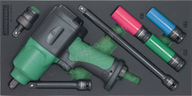 Kpl. 7szt. narzędzi z kluczem pneumatycznym udarowym 1/2" i kpl. akcesoriów we wkładce EVA Jonnesway JA-C107KV