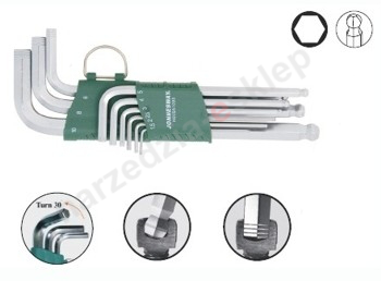 Kpl. 9szt. kluczy kątowych 6-kąt. z kulką długich bezpoślizgowych