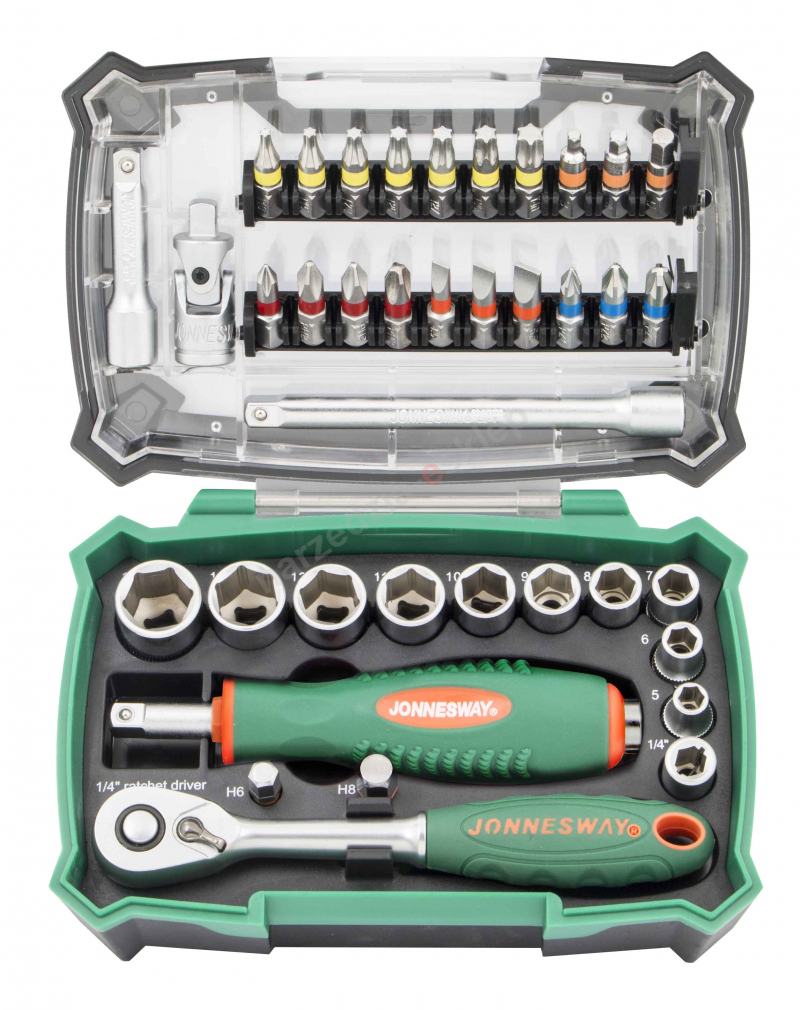 Kpl. bitów i nasadek z grzechotką 1/4" 38szt. - Jonnesway RD0638S