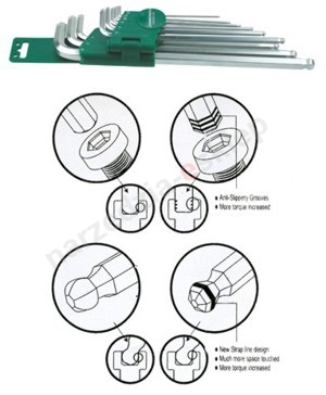 Kpl. kluczy ampulowych giętych 9szt. b. długich bezpoślizgowych z kulką