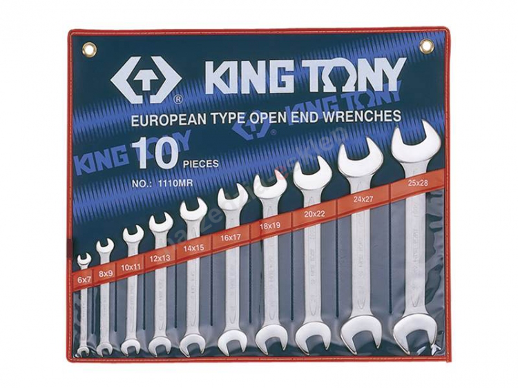 W skład kompletu wchodzą następujące rozmiary kluczy [mm]: 6x7, 8x9, 10x11, 12x13, 14x15, 16x17, 18x19, 20x22, 24x27, 25x28