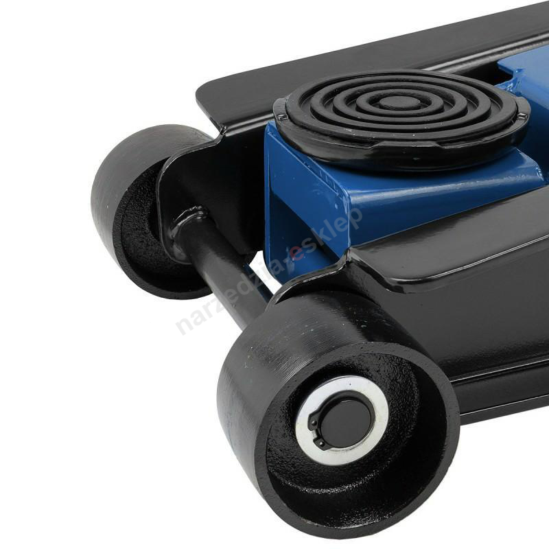 Dzięki odpowiednio zaprojektowanym kółkom, ten podnośnik może być łatwo ustawiony w dowolnym punkcie pod samochodem. Ich konstrukcja znacznie ułatwia manewrowanie tym narzędziem. Ich duża średnica sprawia, że z łatwością będziesz sterować podnośnikiem nawet na chropowatych powierzchniach.