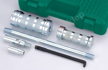 - W zestawie znajduje się nasadka do wtryskiwaczy DELPHI, adapter z gwintem M18 x 1,5, uchwyt hakowy, przegub, przedłużka oraz młotek bezwładnościowy.