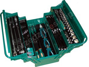 Skrzynka metalowa + 62 szt. narzędzi Jonnesway