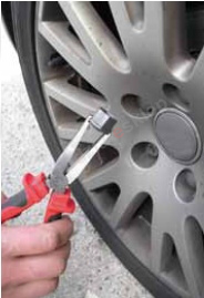 Specjalne szczypce do nakładek na śruby, zdejmowanych i zakładanych podczas sezonowej zmiany opon lub napraw.