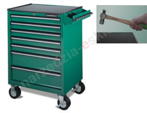 Wózek wyposażony w 7 szuflad na łożyskach kulkowych.