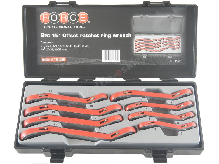 Zestaw 8 kluczy oczkowych z grzech. 6-22mm Force