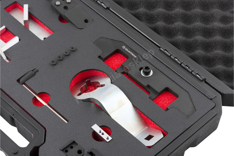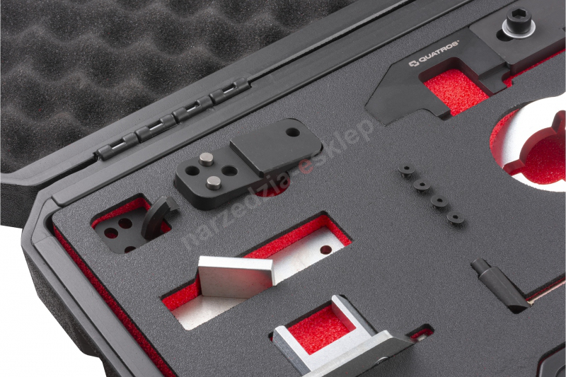 Zestaw blokad rozrządu zawierający wszystkie niezbędne narzędzia umożliwiające wymianę rozrządu bez względu na rodzaj zamontowanej pokrywy wałka rozrządu.