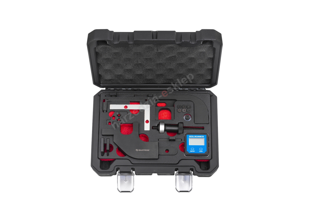 Kompletny zestaw do obsługi rozrządu, umożliwiający wymianę i sprawdzenie rozrządu w silnikach 1.4 i 1.6 PSA/BMW. Obsługiwane kody silników to BMW i MINI: N12, N13, N14, N16 i N18 oraz Citroën/Peugeot: EP3 i EP6. Zestaw zawiera cyfrowy kątomierz (inklinometr) zalecany przez PSA do kontroli zużycia łańcucha oraz poprawnego ustawienia wałka ssącego zmiennych faz rozrządu.