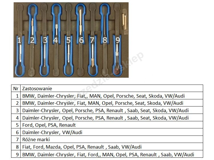 Uniwersalny zestaw narzędzi umożliwiający wypinanie przewodów z kostek elektrycznych bez ryzyka ich uszkodzenia.