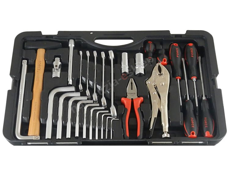 – siedemnaście kluczy płasko-oczkowych: 6, 7, 8, 9, 10, 11, 12, 13, 14, 15, 16, 17, 18, 19, 21, 22, 24 mm