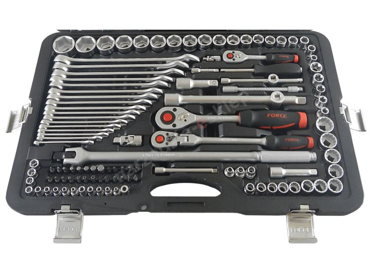 Rozbudowany zestaw nasadek (1/4, 3/8, 1/2") i narzędzi Force 41421.
