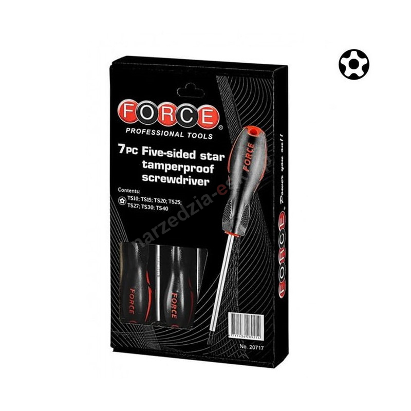 Zestaw wkrętaków 5-ramiennych TORX z otworem TS10-40 7szt. FORCE