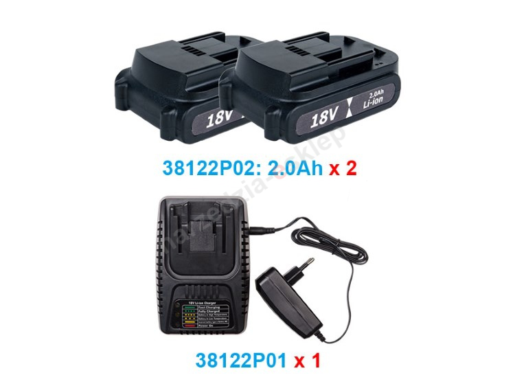 - akumulator (2szt.): 2 x 2.0Ah Li-ion