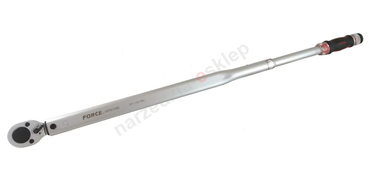 Klucz dynamometryczny FORCE 64761240 w rozmiarze 3/4" to profesjonalne narzędzie, które doskonale sprawdzi się wszędzie tam, gdzie konieczne jest dokręcenie połączeń konkretnym momentem obrotowym w zakresie od 140 do 980Nm.