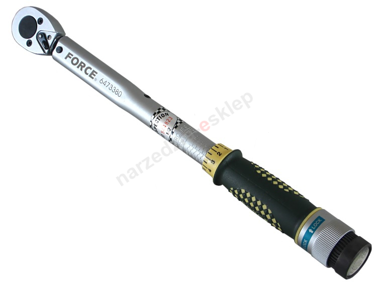 Klucz dynamometryczny Force 6473380 w rozmiarze 3/8\" posiada zakres regulacji siły dokręcania od 20 do 110 Nm. Narzędzie doskonale sprawdza się wszędzie tam, gdzie występuje potrzeba precyzyjnego dokręcenia śrub konkretnym momentem obrotowym. Klucze dynamometryczne Force to gwarancja wysokiej jakości w przystępnej cenie.