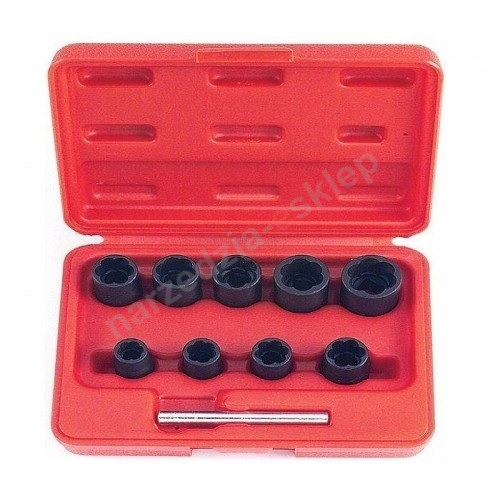 Zestaw nasadek służy do wykręcania zerwanych i zniszczonych nakrętek i śrub. Niezastąpiony w warsztatach samochodowych, mechanicznych i serwisach naprawczych. Specjalny kształt wewnątrz nasadki/wykrętaka umożliwia wgryzienie się w główkę obrobionej śruby lub nakrętki w celu zakleszczenia się. Całość zestawu w praktycznej walizce ułatwiającej transport i przechowywanie.