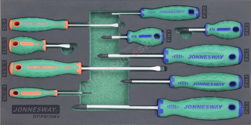 Kpl. 10szt. wkrętaków we wkładce EVA Jonnesway D71PS110KV