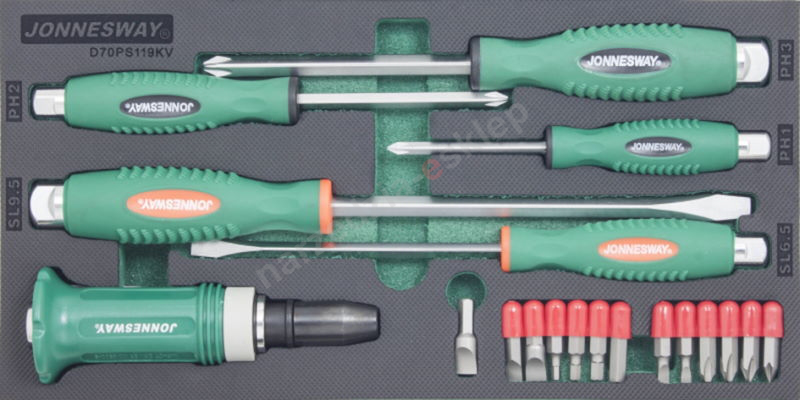 Kpl. 19szt. wkrętaków do pobijania we wkładce EVA Jonnesway D70PS119KV