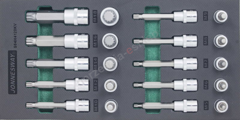 Kpl. 20szt. kluczy SPLINE z nasadką 1/2" we wkładce EVA Jonnesway S64H4120KV