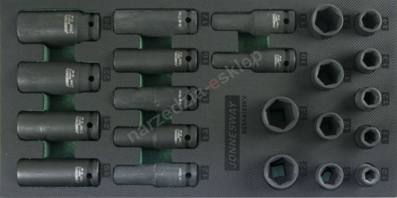 Kpl. 22szt. kluczy nasadowych udarowych 1/2" we wkładce EVA Jonnesway S03A4122KV