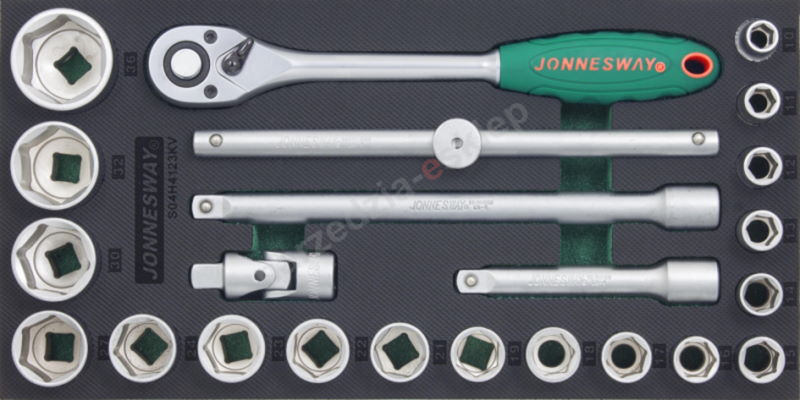 Kpl. 23szt. narzędzi 1/2" z nasadkami 6-kt. we wkładce EVA Jonnesway S04H4123KV