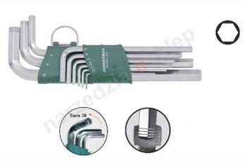 Kpl. 9szt. kluczy kątowych 6-kątnych długich bezpoślizgowych