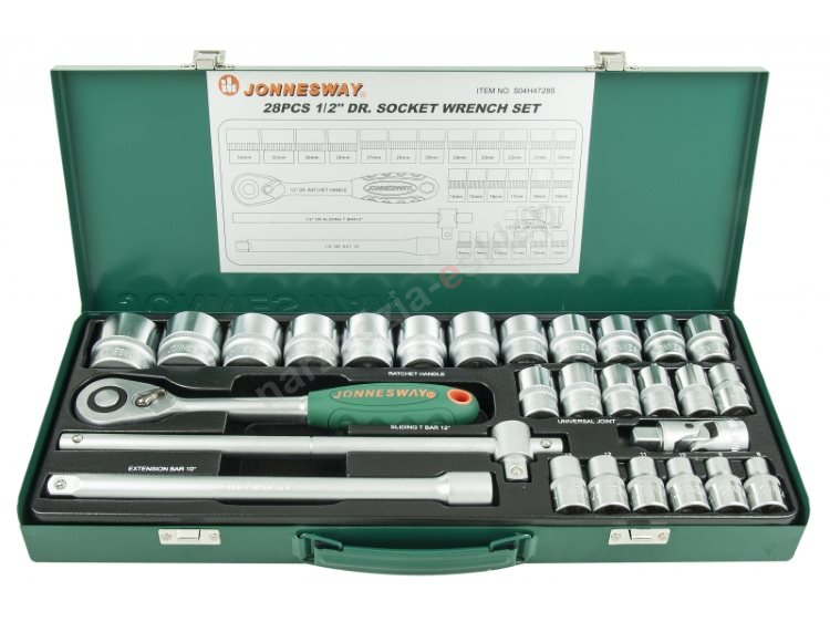 Kpl. kluczy nasadowych 1/2" 28 szt. 6-kąt. Jonnesway