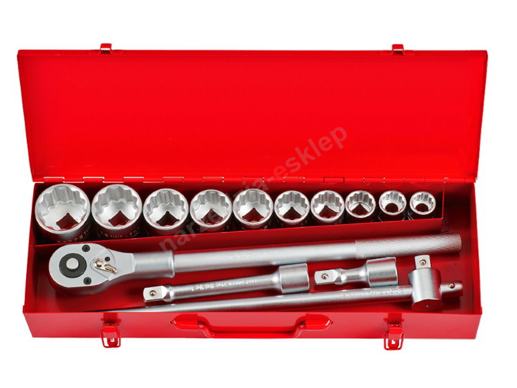 • klucze nasadowe 12-kątne - 10 szt. - w rozmiarach: 22, 24, 27, 30, 32, 36, 38, 41, 46, 50mm