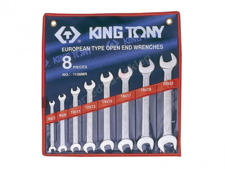 W zestawie znajduje się 8 kluczy o rozmiarach [mm]: 6x7, 8x9, 10x11, 12x13, 14x15, 16x17, 18x19, 20x22mm