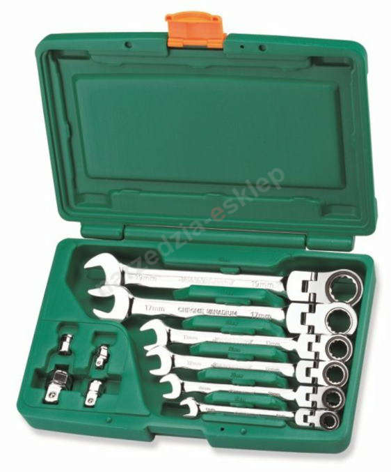 Kpl. kluczy płasko-oczkowych z grzechotką 72z przegubowych 8-19mm
