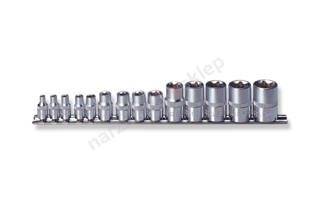 Kpl. nasadek 'E' 1/4", 3/8" i 1/2" 14szt. E4-E24