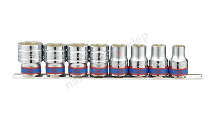 Kpl. nasadek krótkich 1/2" 8cz. 6-kąt. 10-22mm na szynie