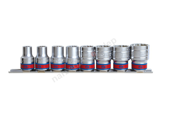Kpl. nasadek krótkich 1/2" 8cz. 12-kąt. calowych na szynie