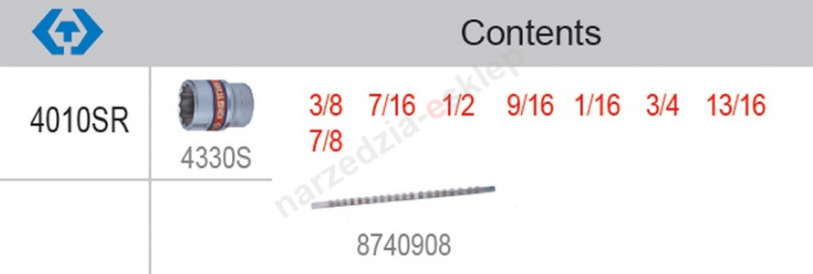 • nasadki calowe któtkie 1/2" 12-kątne : 3/8", 7/16", 1/2", 9/16", 1/16", 3/4", 13/16", 7/8"
