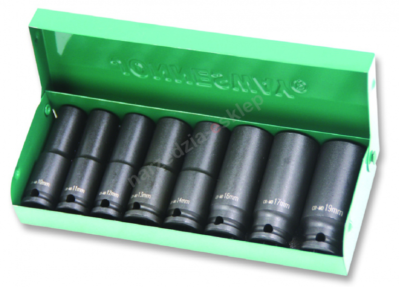 • 8szt. nasadek udarowych długich 3/8" w rozmiarach: 10, 11, 12, 13, 14, 16, 17, 19mm