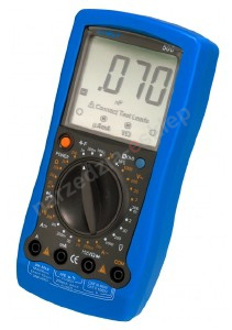 Multimetr cyfrowy o dużym wyświetlaczu, wskazującym również poprawność styku kabelków, oraz wybrany zakres. Do mierzenia napięcia stałego/zmiennego, prądu stałego/zmiennego, rezystancji, pojemności, częstotliwości, temperatury.