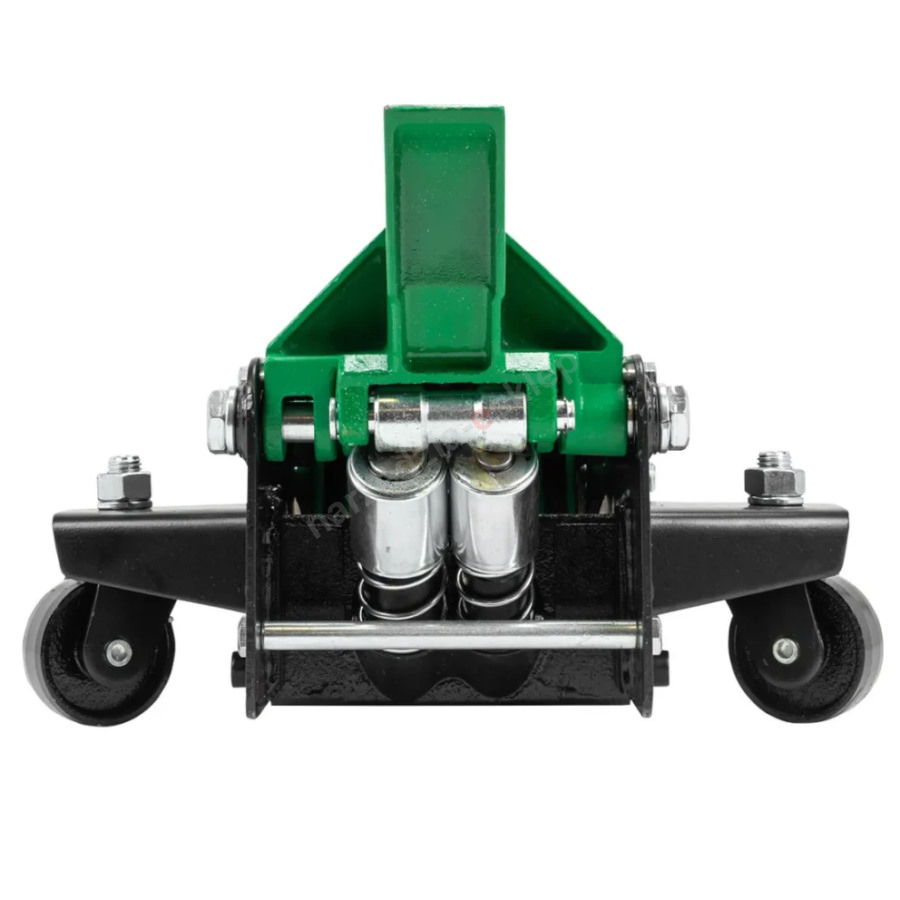 Dzięki odpowiednio zaprojektowanym kółkom, ten podnośnik może być łatwo ustawiony w dowolnym punkcie pod samochodem. Ich konstrukcja znacznie ułatwia manewrowanie tym narzędziem. Ich duża średnica sprawia, że z łatwością będziesz sterować podnośnikiem nawet na chropowatych powierzchniach.