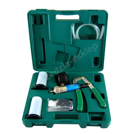 podwójna (ciśnieniowa i podciśnieniowa) pompka z zestawem do odpowietrzania i wymiany płynu hamulcowego.