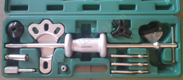 Wysokiej jakości uniwersalny ściągacz bezwładnościowy firmy Jonnesway. W skład zestawu wchodzi ergonomiczna plastikowa walizka, umożliwiająca wygodny transport i przechowywanie ściągacza.