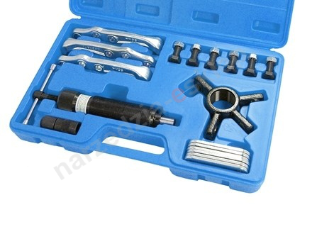 W skład zestawu wchodzi siłownik 10 tonowy z trzema łapami o trzech różnych długościach mocowania. Uniwersalny uchwyt mocujący pozwala na wykorzystanie ściągacza dwuramiennego lub trójramiennego. Maksymalna średnica rozstawu łap jak i długości łap wynosi 250mm.