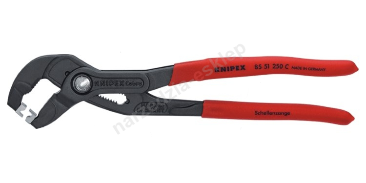 Profesjonalne szczypce nastawne firmy Knipex do opasek i obejm zaciskowych sprężynujących, opasek drucianych i pierścieni z taśmy sprężynowej.