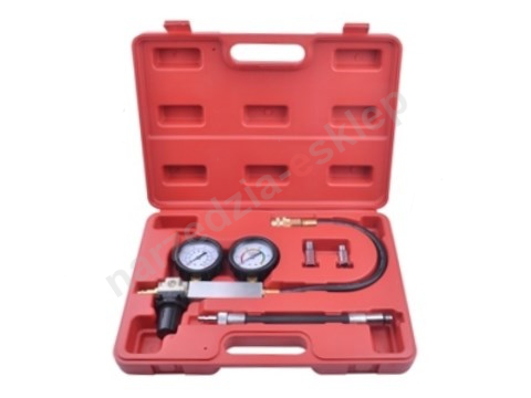 Tester szczelności cylindrów firmy Quatros pozwala na zbadanie stopnia zużycia silnika poprzez doprowadzenie do cylindra sprężonego powietrza i określenie procentowego spadku ciśnienia spowodowanego nieszczelnościami cylindra.