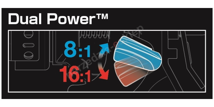 • podwójny mechanizm zapadkowy TwinThrut z możlwością zmiany przełożenia (8:1 i 16:1) zapewniający przeniesienie dużej siły
