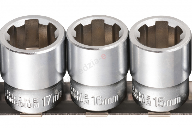 - 12 szt. nasadek 3/8" w rozmiarach: 8, 9, 10, 11, 12, 13, 14, 15, 16, 17, 18, 19mm