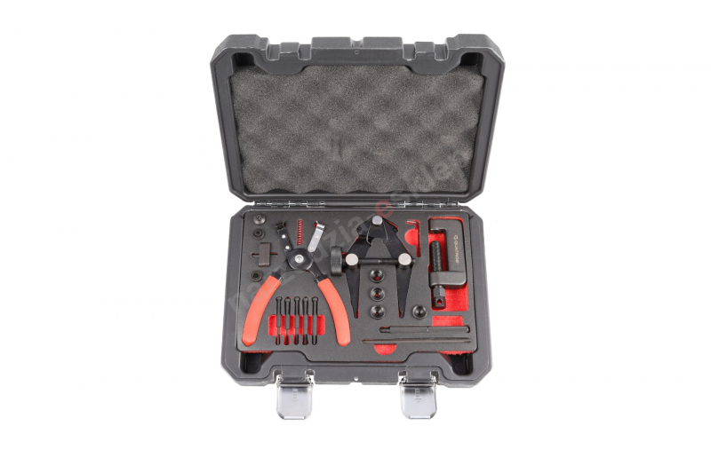 Zestaw narzędzi do kompleksowej obsługi łańcucha motocyklowego w skład którego wchodzą m.in.: