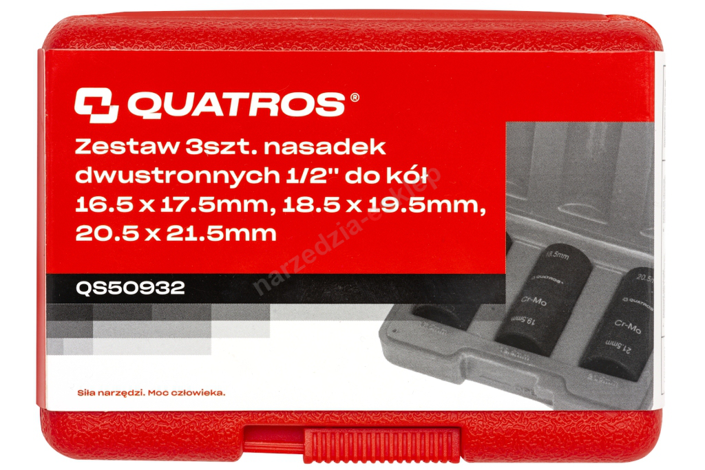 Zestaw 3szt. nasadek dwustronnych 1/2'' do kół 16.5 x 17.5mm, 18.5 x 19.5mm, 20.5 x 21.5mm QUATROS - QS50932