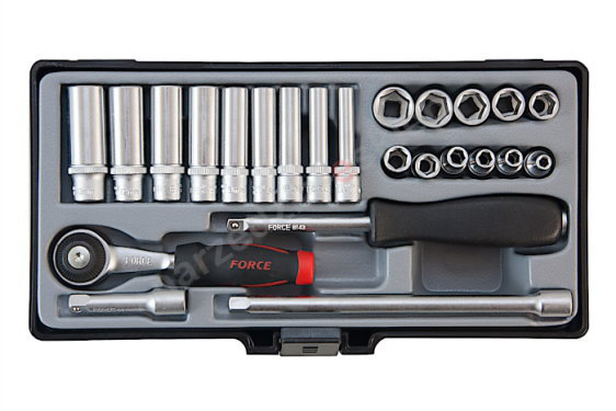 Zestaw kluczy nasadowych 6-kąt. 1/4" 24 el. Force