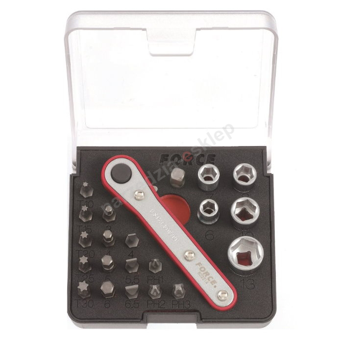 Zestaw kluczy nasadowych i bitów z grzechotką 1/4" 22 el. Force