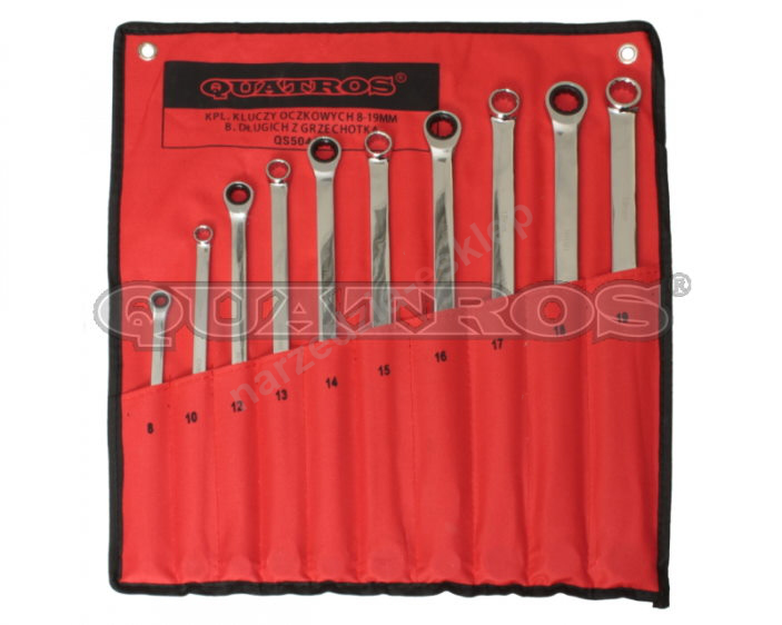 Zestaw kluczy oczkowych 8-19mm b. długich z grzechotką 72z. - QUATROS QS50465